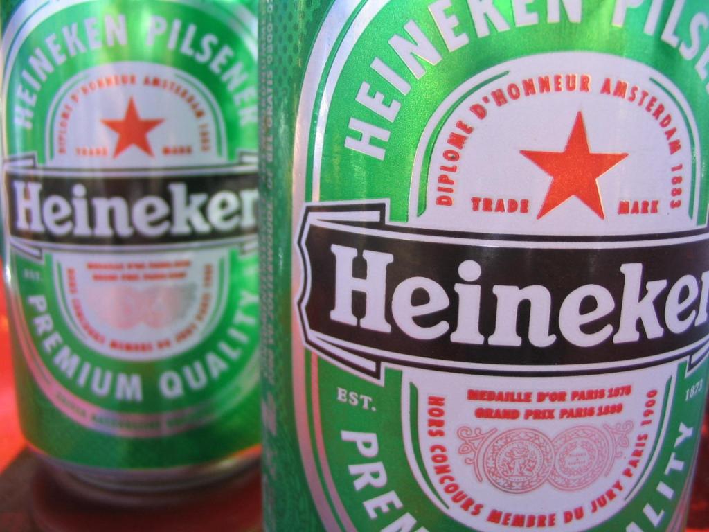 Two cans of Heineken.