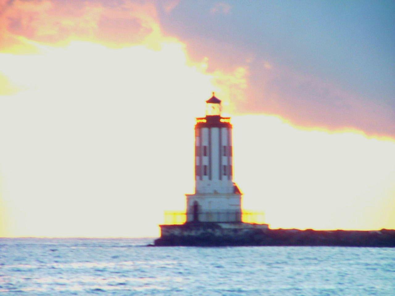 sun blasts the lighthouse causing a blurry eyed focus...san pedro...los angeles harbor